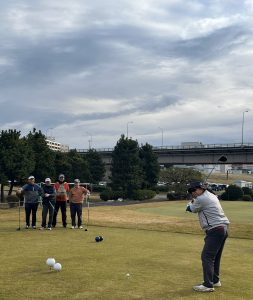 方も多くいらっしゃいました。利根川側の河川敷とは思えない樹木もあるコースで、今時はめずらしい高麗グリーンを楽しみました。